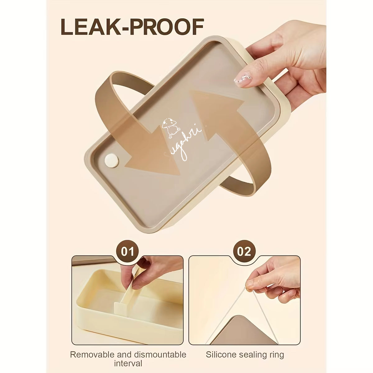 Includes a set of two lunchboxes with their upper lid, respective silicone lid, removable interval to separate food and cutlery set of chopsticks, spoon and fork.